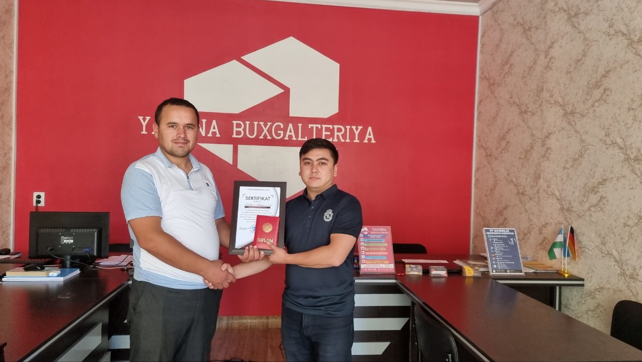 Buxgalteriya asoslarini va 1c dasturini o dan bosh buxgalter darajasigacha o'rgatish. Kurs yakunida Diplom + sertifikat bilan taqdirlash. Eng asosiysi kursni tamomlagandan song ish jarayonida amaliy yordam berish.